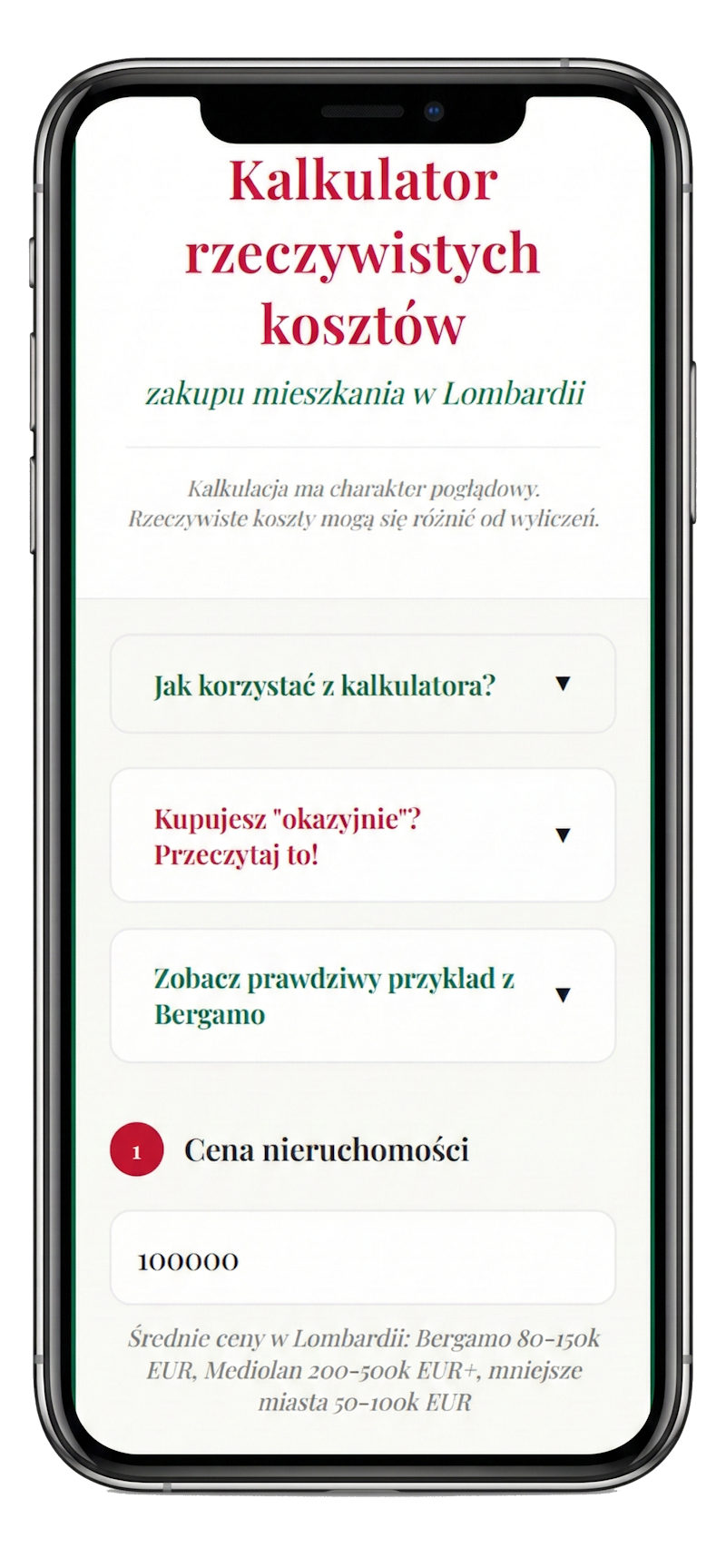 "Kalkulator rzeczywistych kosztów zakupu nieruchomości w Lombardii"